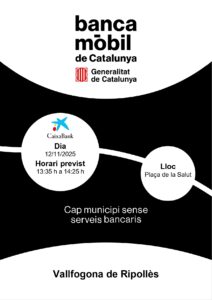 Dimecres 12 d’octubre, a la Plaça de la Salut, CaixaBank oferirà el seu servei de Banca Mòbil des de les 13:35h fins a les 14:25h.