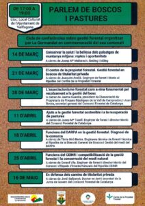 Agenda, General Parlem de boscos i pastures: cicle de conferències sobre la gestió forestal organitzat per “La Germandat” en commemoració del seu centenari. < Entrada Anterior